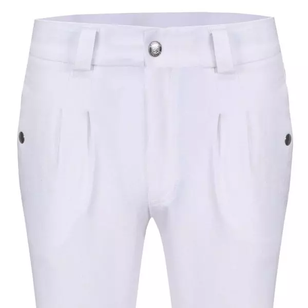 These new Kingham Breeches from Equetech are sure to be a hit with the gents. The offer a superb fit, woven fabric which is hardwearing and at such an affordable price they are great for everyday wear. Features a contoured self fabric seat, Equetech® silicone knee grip, press button pockets, Lycra® panel to cuff, comfort waistband and belt loops. Machine washable. Woven 62% Polyester/ 33% Viscose/ 5% Spandex.