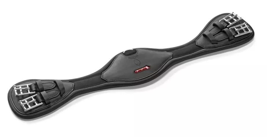 The Equipe Anatomic Bielastic Dressage Girth GH33 can be used with or without sheepskin. It is ergonomically shaped to allow shoulder movement. As worn by Charlotte DuJardin at the World Equestrian Games. Elasticated both sides with soft calfskin padding. Available in black only