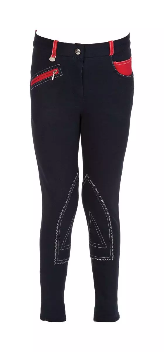 A fashionable jodhpur which gives the look of wearing jeans. A flattering contrast stitch and colour contrast pockets, belt loops and zip detailing make this a must have product. Machine washable at 40C. Leg length: Regular.
