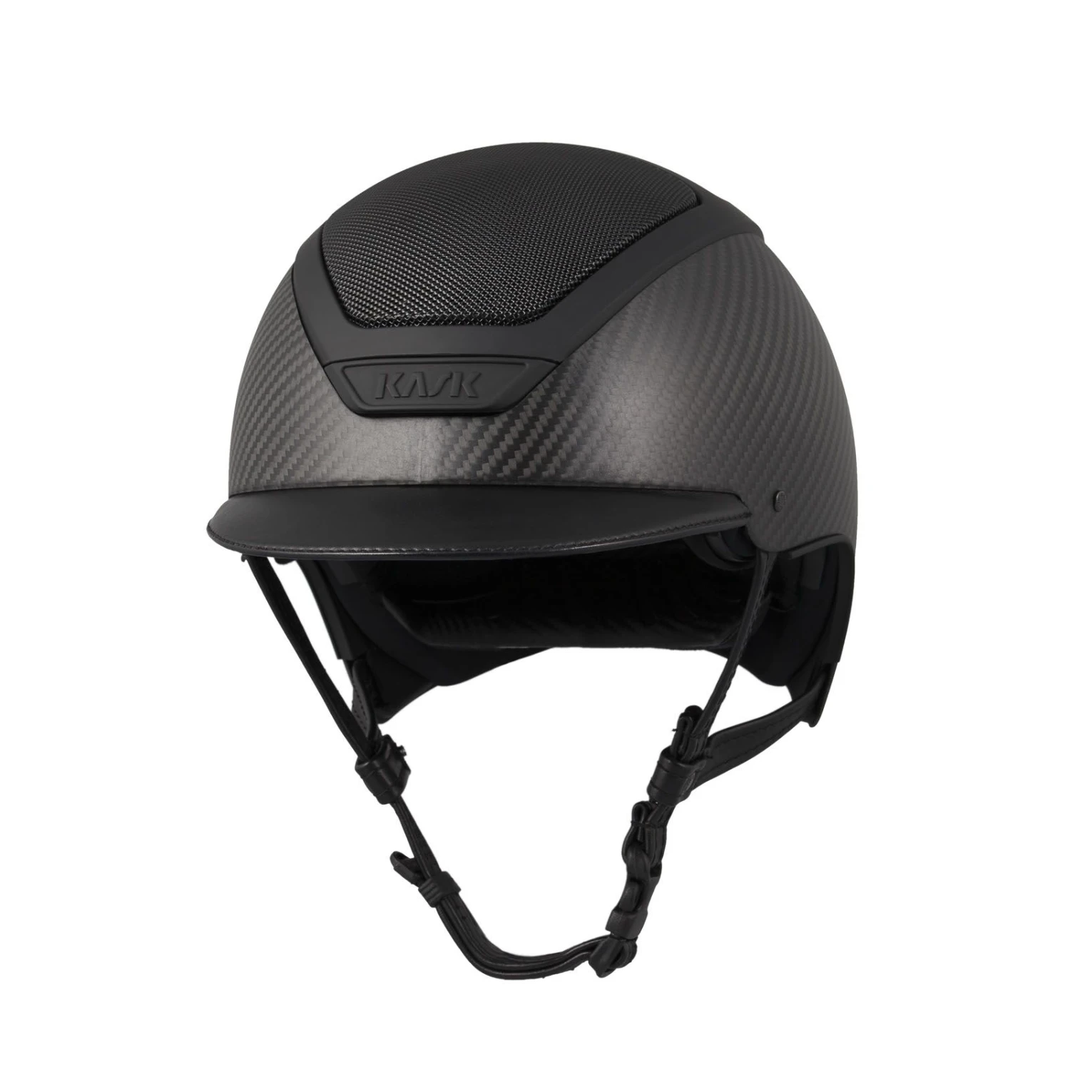 Designed and completely made in Italy, the Dogma Carbon perfectly combines style, design, and functionality. Its elegant shape and unique technological details guarantee comfort, safety and high performance to the rider. The molded outer shell, in real carbon, is very resistant and light. Additionally, the soft real-leather chinstrap is hypoallergenic, washable, and helps avoiding irritations of the skin. It adds a touch of style to this model, which will be much appreciated by the most demanding riders for its fit and design. The comfortable and breathable inner padding is made of 100% Merino Wool: a natural antibacterial fiber that provides unique levels of breathability and thermoregulation. The inner shell is made with expanded polystyrene and features three levels of densities in order to ensure total shock protection, comfort and lightness. With two honeycomb-like aeration grids built in the polystyrene, a smart ventilation system in the helmet provides high volumes of cooling airflow, adding extra comfort to the rider. KASK is well aware that the helmet has to fit correctly to the rider’s head so that the best safety level is guaranteed. This is the reason for which KASK helmets are provided with KASK’s patented self-adapting adjusting system in a carbon look. Introduced for the first time in the equestrian market, the FIT System allows the helmet to perfectly and automatically fit on the rider’s head by gently cradling the back of the head. Dogma Carbon is available in different models to suit the taste of every rider. Weight 525g
