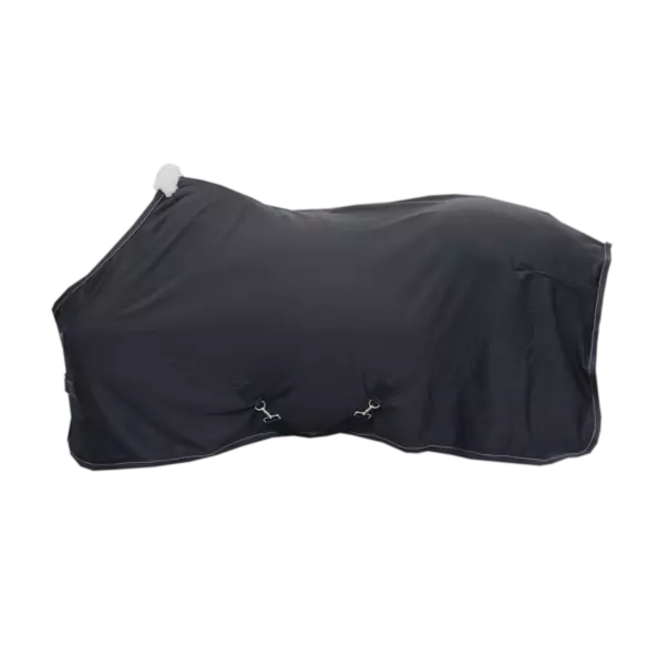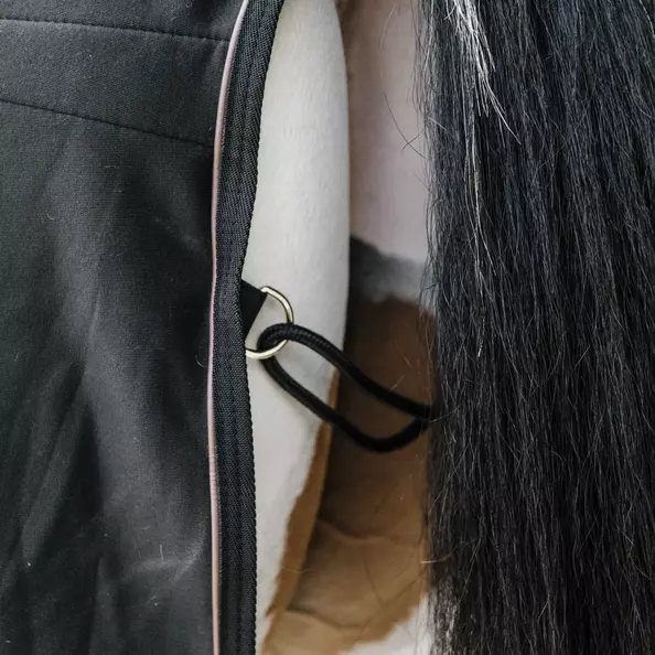 The Kentucky Horsewear Cooler Fleece Rug is the ideal rug to use after training or bathing your horse. This rug absorbs the sweat or water and makes sure that your horse doesn’t get cold in the process. It features two surcingles on the inside of the rug which are detachable so the rug can also be used as a show rug. The fancy leather piping, the artificial sheepskin on the withers and the elegant front closures offer a luxurious look to this Cooler Fleece Rug. It features two D-rings and a nylon strap to go under the tail to keep it in place. The rug sustains the washing machine at 30°, no dryer.