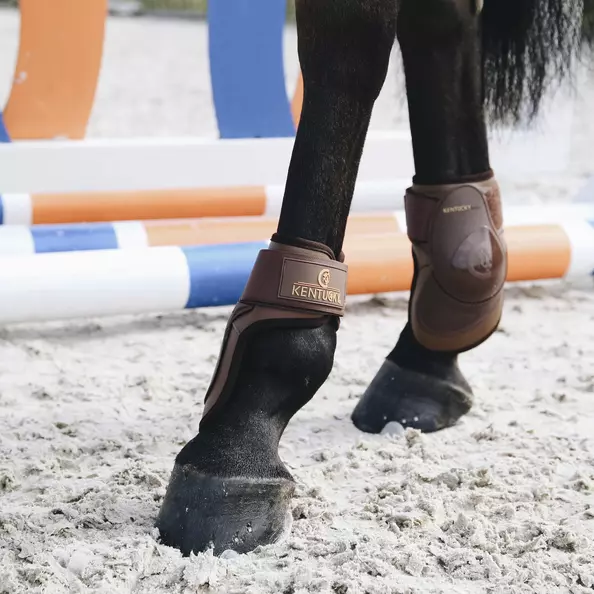 Due to high demand of our Kentucky Horsewear Ambassadors and their grooms we developed a new fetlock boot with integrated pastern protection that is also allowed in the young horses’ classes (FEI approved). The Deep Fetlock Boots offer outstanding lightweight protection with Proteck Impact Gel* within the boot’s strike zone. Anatomically shaped to offer a comfortable and stable fit, the design features a tough outer shell casing, styled in an extremely light yet strong TPU with an embossed logo which helps to protect against impact without compromising on style. The Deep Fetlock Boots have an extended neoprene lining that covers the inside of the pastern area and protects against cuts or other injuries. The outside of the neoprene is reinforced with a soft rubber shell. These boots are ideal for horses that tend to injure themselves in the pastern area. The PVC leather section on the single Velcro strap is hardwearing, easy to clean and features the brand’s eye-catching logo. The generous Velcro strap ensures a secure and adjustable fit, completing this highly desirable boot. These boots sustain the washing machine at 30°, no dryer. Use our Boots Cleaner to make them look shiny and brand new!