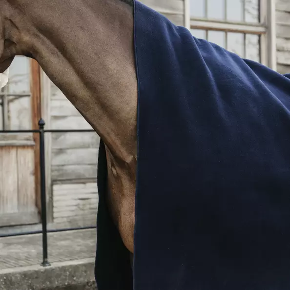Thanks to the big square shape and size the fleece rug can be worn and used in different ways. The extended neckpiece can be folded over or serve as a neckpiece for more warmth. You can also fold the rug together and place it behind your saddle for a sophisticated look. Because of the lack of pressure between the rug and the manes, you don’t need to worry about rubbing. You also don’t have to worry about tangling cross surcingles or the pressure of front closures.
