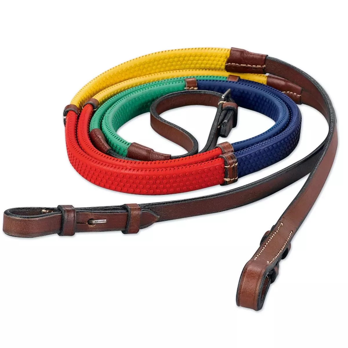 High Quality 3 colour reins to aid riders when learning. Full size is 54″ and Pony is 48″