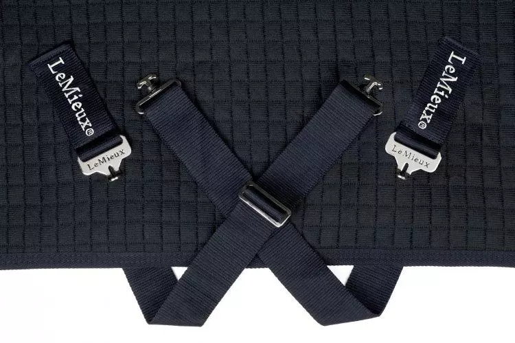 The multi-layered structure of the LeMieux Arika Clima-Tek rug has a unique wool and acrylic blend, making it perfect for moisture management. This structure controls muscle temperature during the cooling process, allowing for effective moisture wicking without cooling muscles too quickly making this rug perfect on chillier days