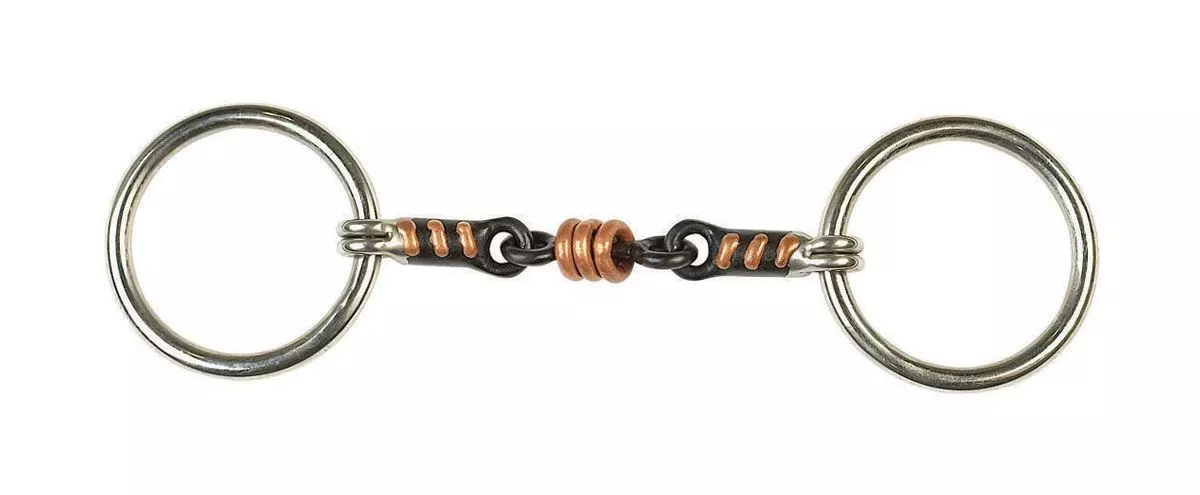 The combination of sweet iron and copper makes the bit very palatable and almost all horses will salivate and soften in response to the taste. The loose ring copper players in the centre give the horse something to think about, and often help to soothe a fussy tongued horse.