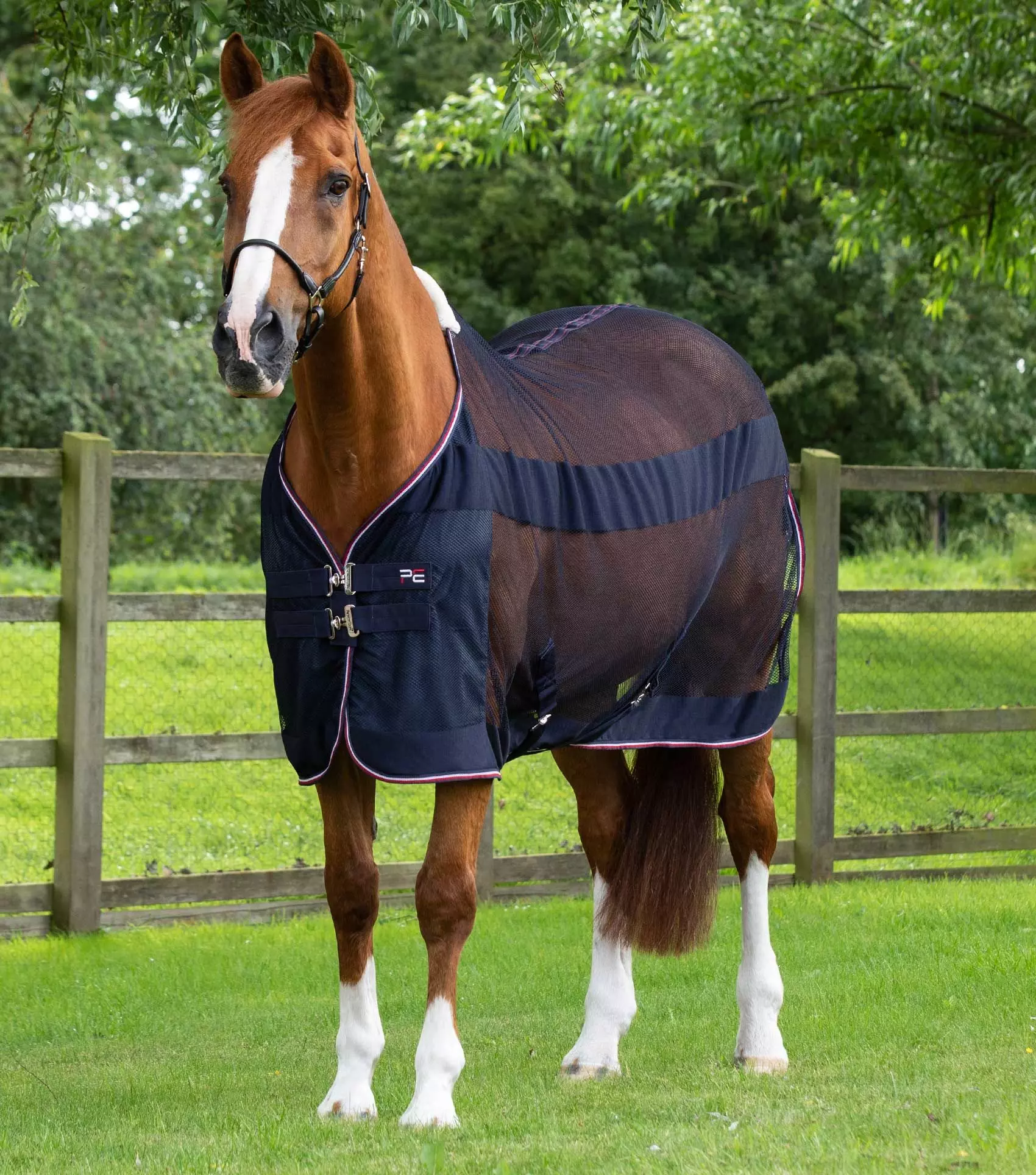 The Premier Equine Arisca Scrim Cooler is an ideal lightweight post-performance rug. combining solid and mesh knit formation, this technically advanced cooler provides partial coverage of the horse’s coat which aids in the absorption and dispersion of moisture while allowing the exit of warm heat energy given off by the horse.