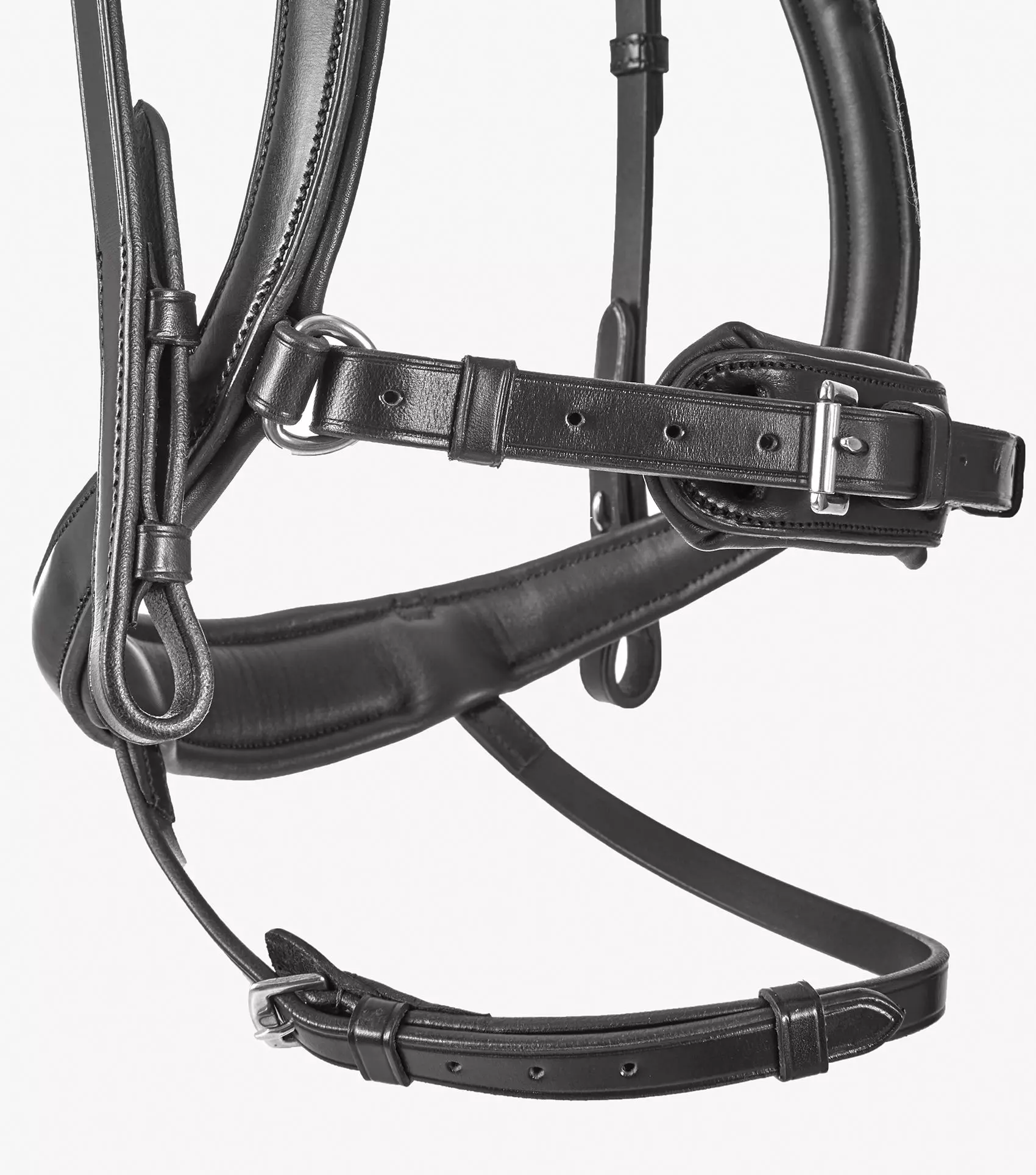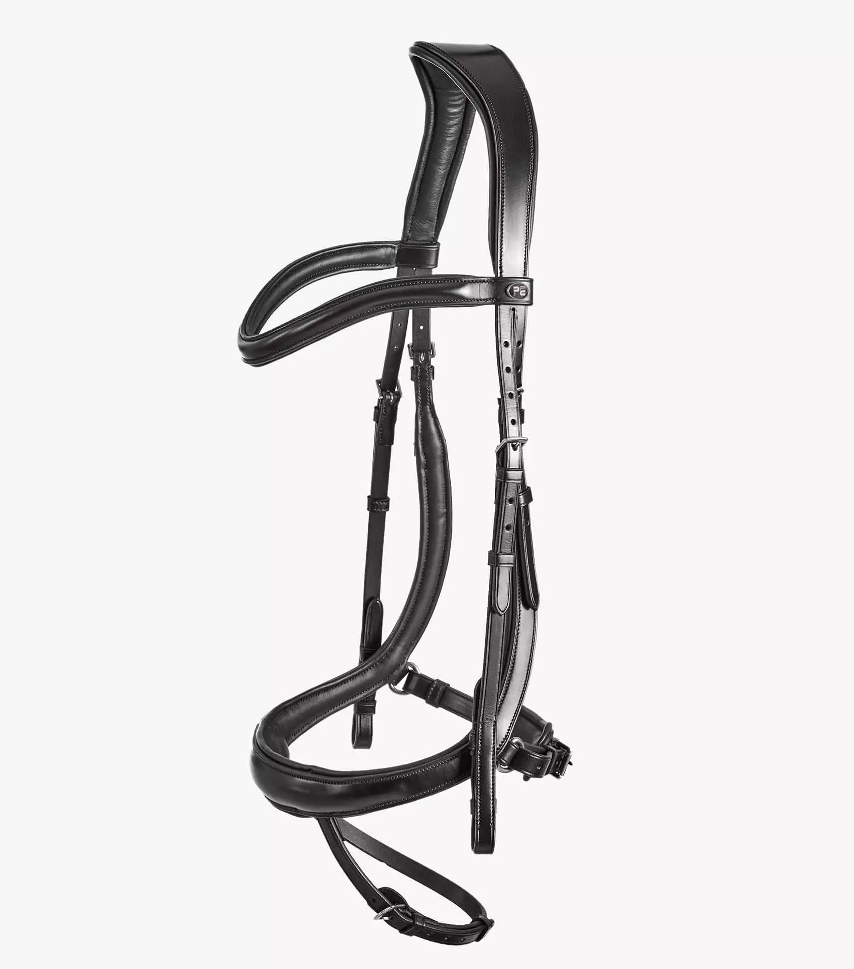 The anatomically shaped, padded poll piece has been crafted to distribute pressure over the less sensitive areas of the poll and away from the ears. A padded, shaped browband creates definition and the round raised design offers an elegant aesthetic. Our anatomically shaped snaffle noseband with integrated flash dips down to avoid contact with the horse’s cheekbones, alleviating pressure and potentially heightening performance.