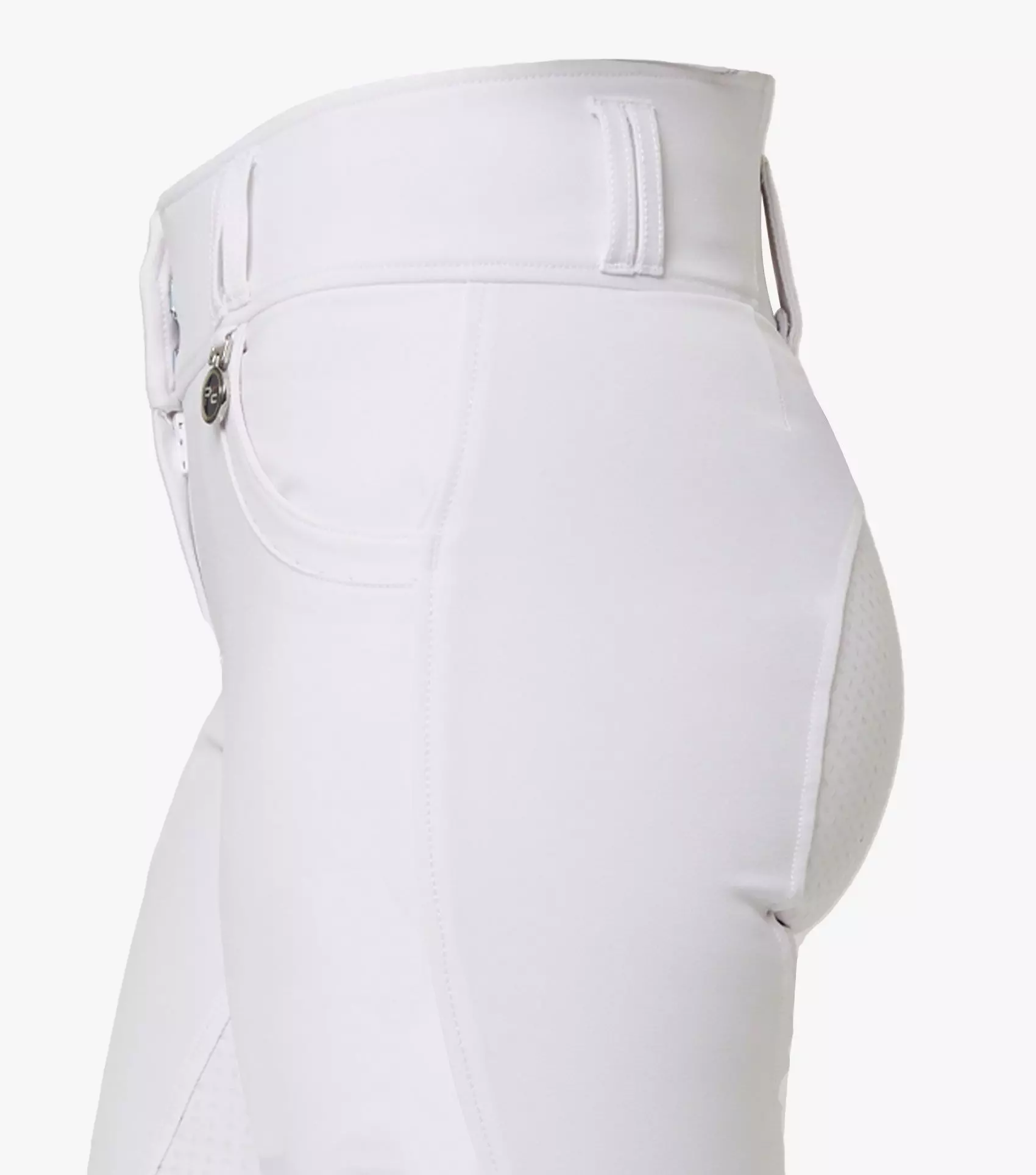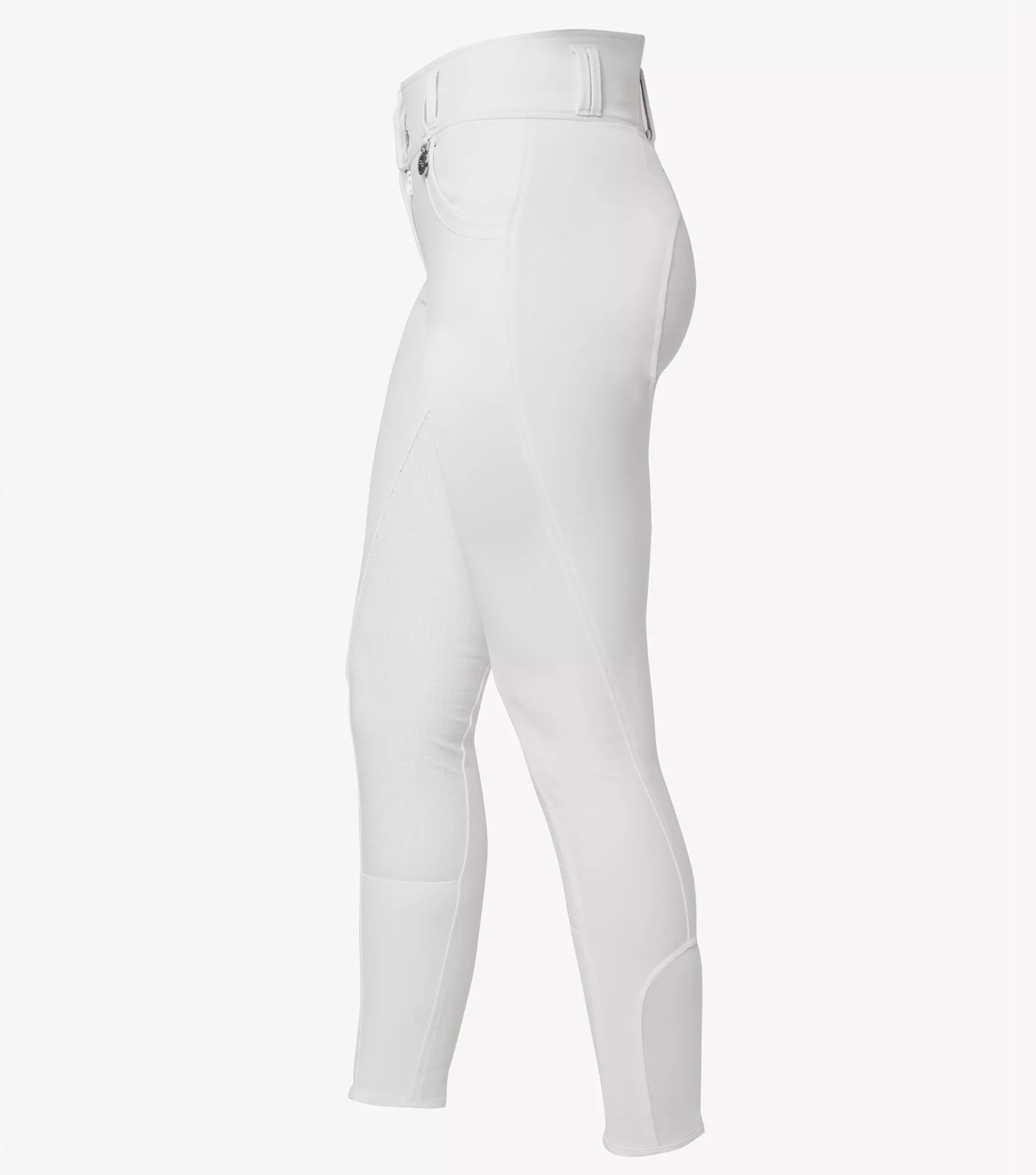 Engineered with a traditional four-way stretch fabric these ladies breeches are designed to perform, featuring an elegantly shaped high waist band which provides support to the riders core and aids in correct positioning, finished with double slider fastening for a flattening silhouette.