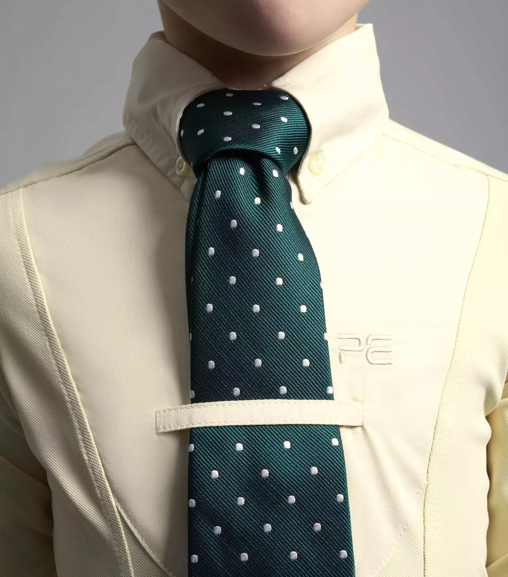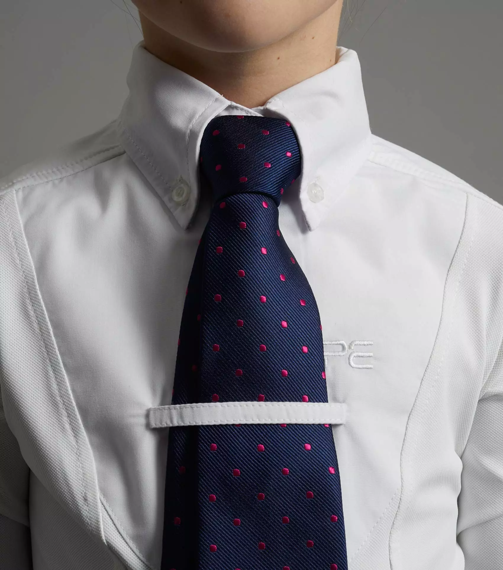 The Premier Equine Tessa Girls Long Sleeve Show Shirt is a crisp, smooth cotton poplin cloth shirt that has been expertly tailored and set on a base of technical four way stretch pique jersey known as our hydropore fabric. This performance based fabric combination will help wick away moisture and keep you cool on warm days.