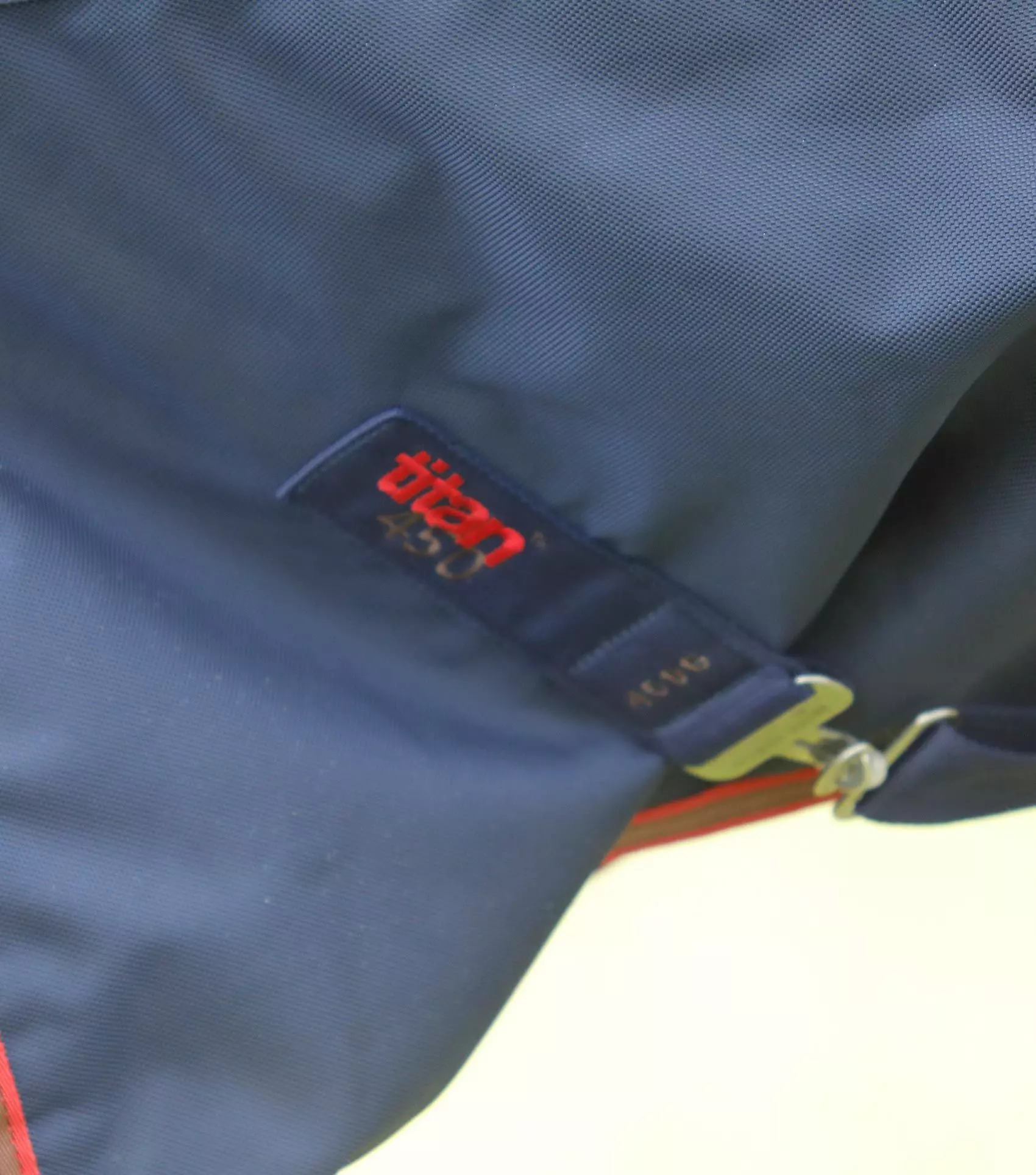 Made from our high quality, resilient 1680D ballistic nylon material and treated with our proven waterproof system. The breathable formula helps to regulate your horse’s temperature keeping them comfortable during cold weather turnout. The Titan 450 features elegant details such as branded stainless steel hardware and subtle contrast embroidery/trims. An ideal waterproof horse rug for particularly cold conditions or for horses who require more warmth.