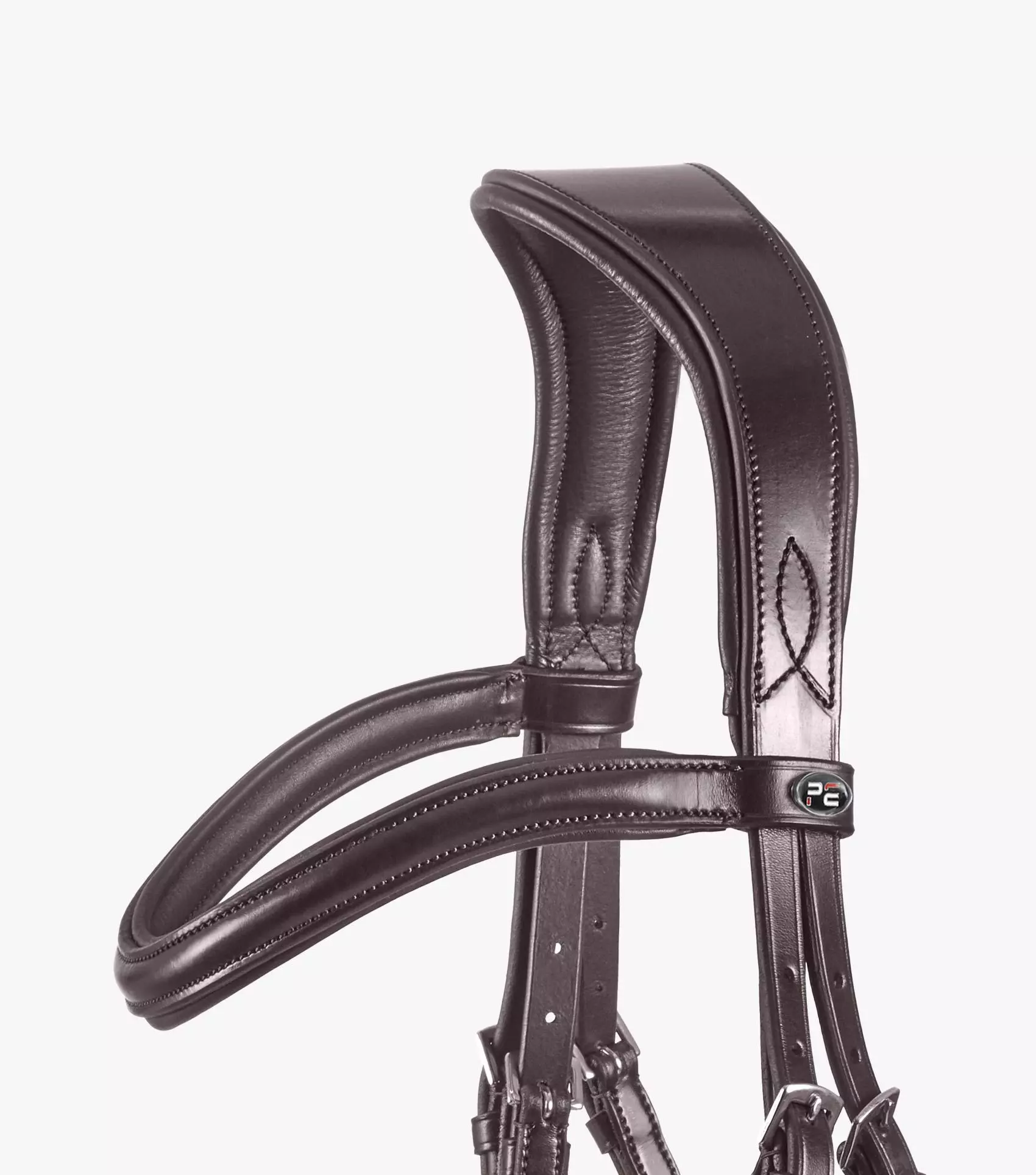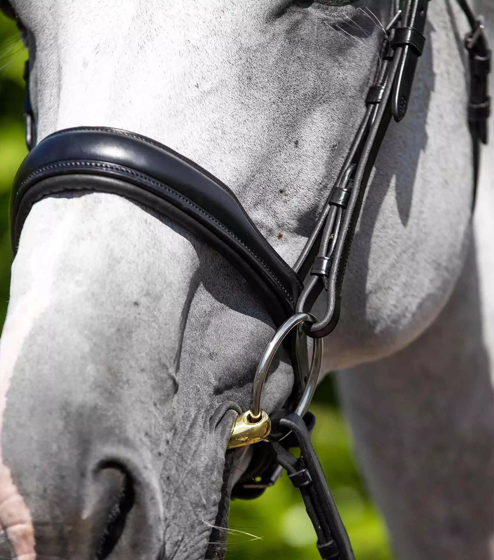 Constructed using high quality Italian leather this anatomic bridle has been carefully shaped to contour around the horse’s ears, nose and cheekbones in order to achieve a more comfortable and ergonomic fit. The anatomically shaped, padded poll piece is designed to distribute pressure over the less sensitive areas of the poll and away from the ears. The browband is also shaped to create definition and features a round raised design alongside soft padding.