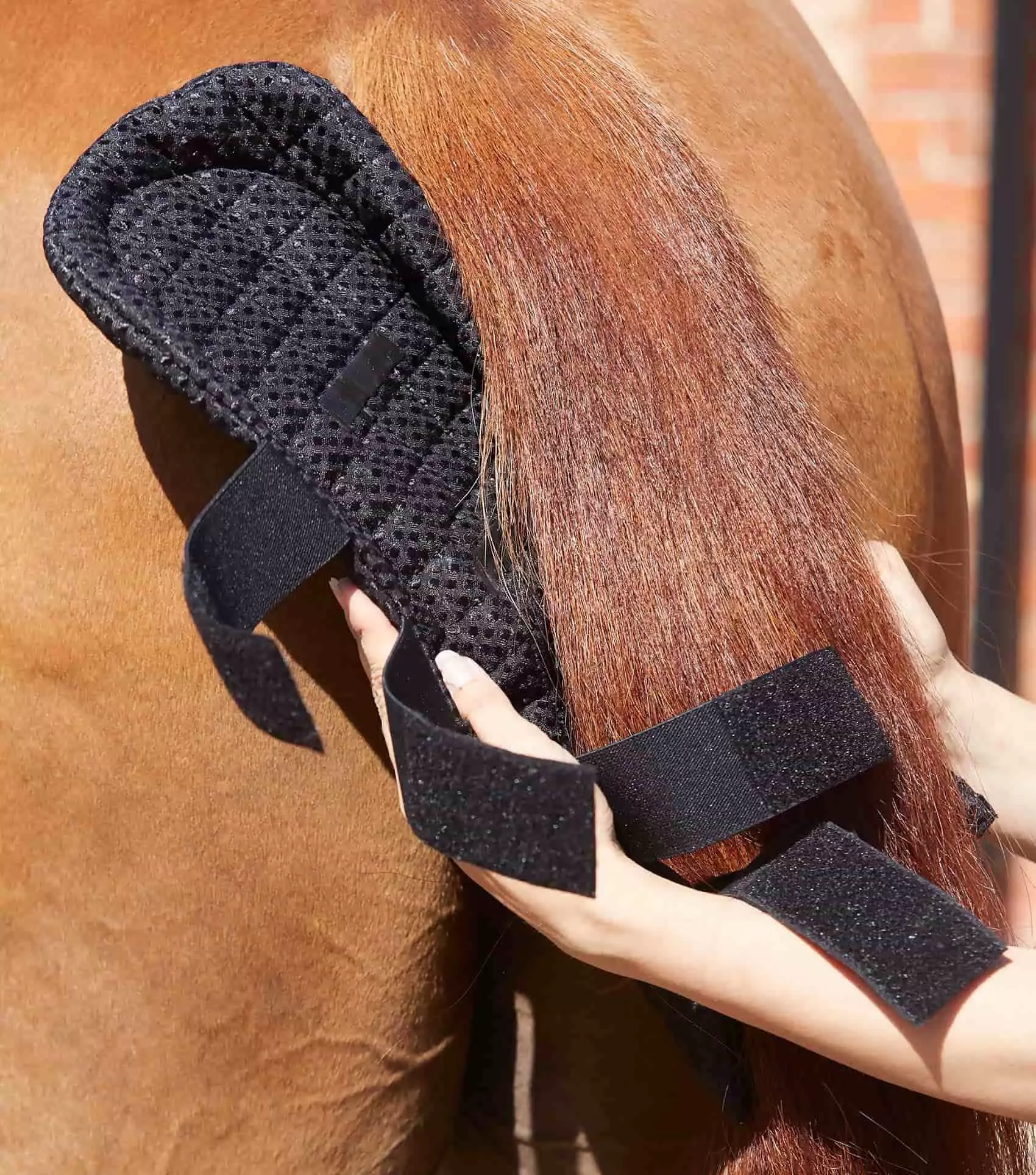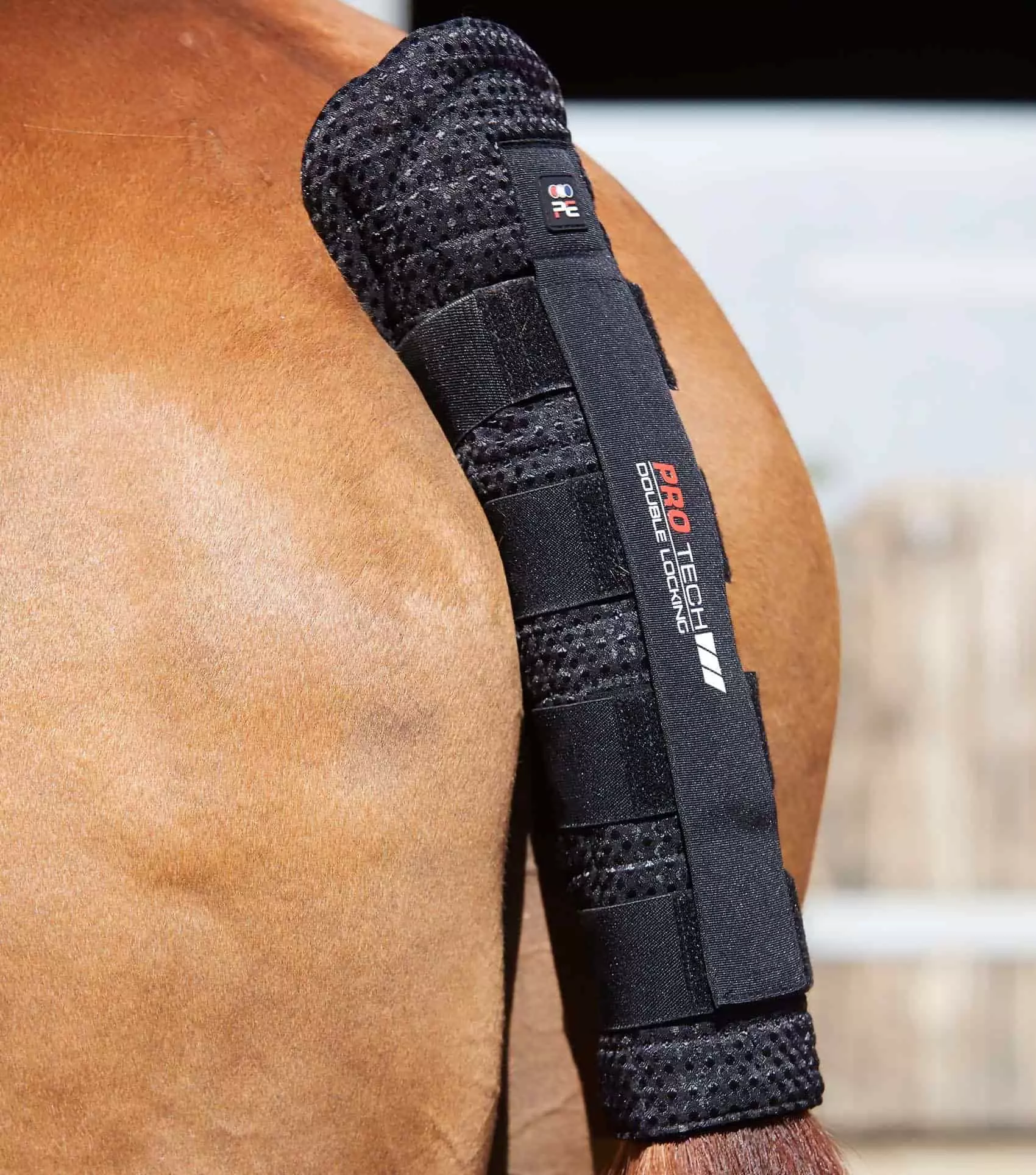 Four elasticated Velcro straps contour around the tail to provide even pressure and a vertical Velcro strap down the front of the tail guard provides secure double-locking.