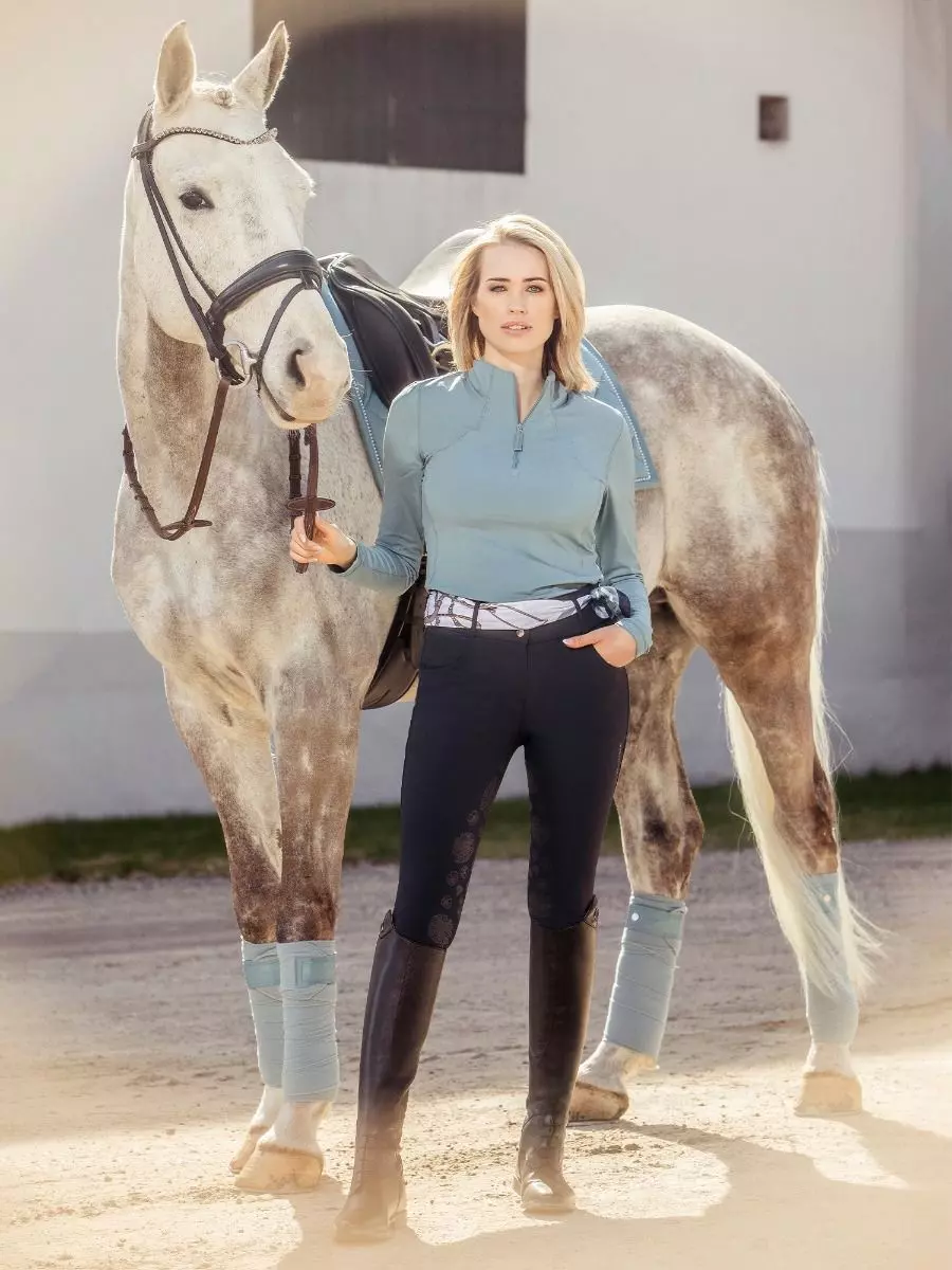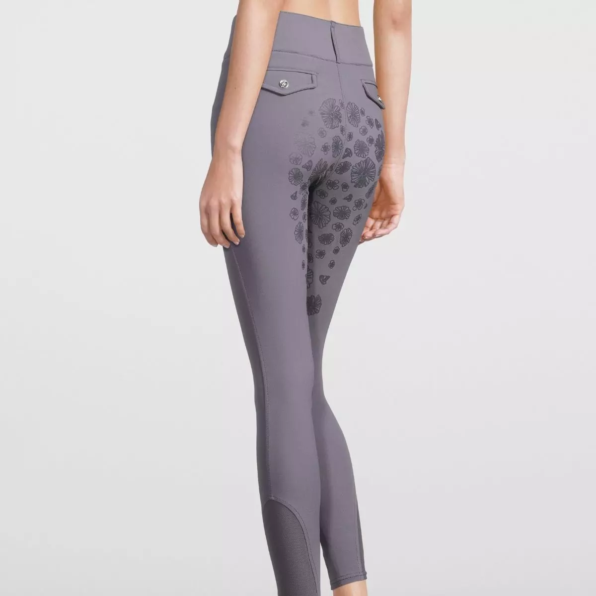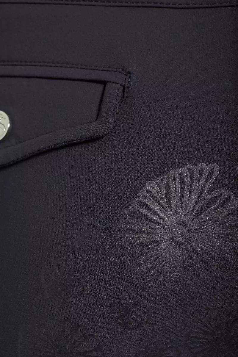 Full seat tailored breeches made in an exclusive four-way-stretch material. The breeches have a close-fitting high waist and a mesmerizing floral print in silicone. The PS logo is printed tone-in-tone at the thigh and in the back. Carefully designed details, like the leg openings with mesh socks for extra support and breathability, and the fake back pockets with logo studs. A matching floral pattern is found on the Floret saddle pad – for a complete look.
