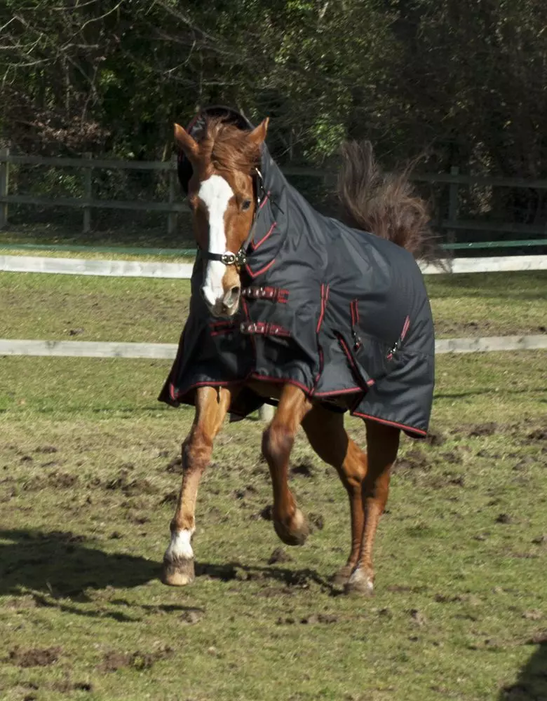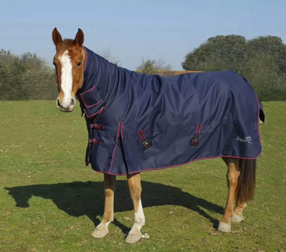 The rug features 1000 denier, waterproof breathable outer which is teflon coated for extra protection and wearability. making this rug perfect for the winter months. It has a heavyweight 350gsm polyfill with a breathable nylon lining. It is secured with double chest straps, cross-over surcingles, leg straps and features a fixed neck cover with easy and quick loop through elastic / Velcro fastening.