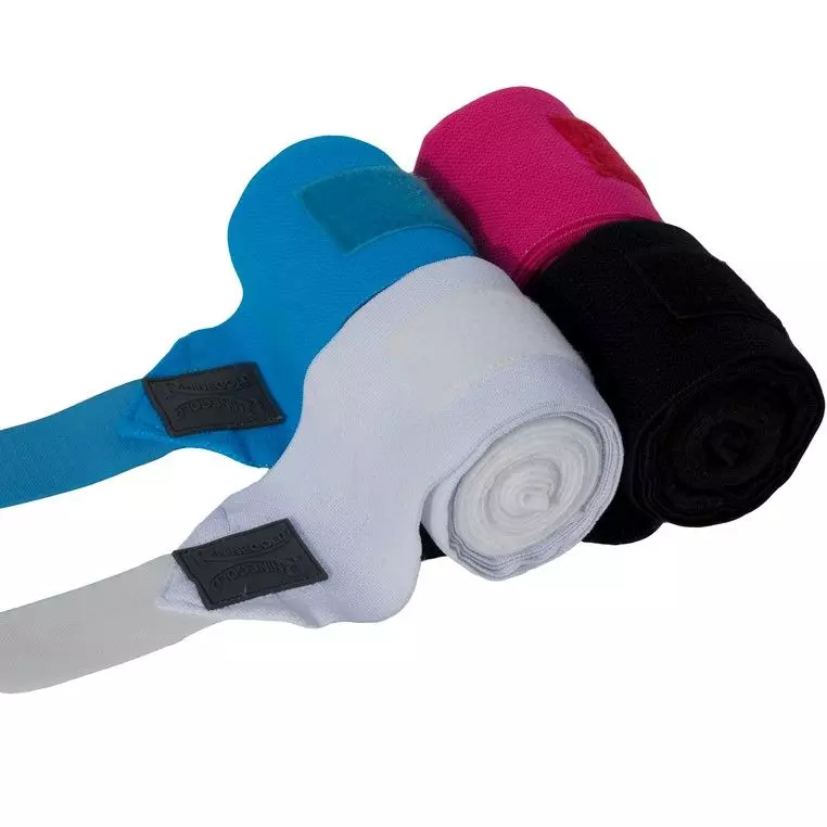 Set of 4 bandages specifically designed for training. With a sturdy fleece inner and elasticated outer these bandages support the legs aswell as protecting from bumps and scrapes.touch tape fasten with rubber tab for easy grip