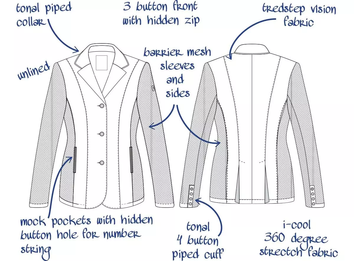 Tredstep Airlite Jacket represents a New Generation in Tredstep’s Jacket Collection. Precisely focused on the lightness, with full stretch mesh sleeves and sides, Airlite gives a unique performance ability without loosing its elegant shape. A three button front, supported by hidden zipper ensure the best styling line even during most challenging moments. Additionally a four button cuff detail, discreet branding and tonal collar reveal the statement of the top competition jackets.