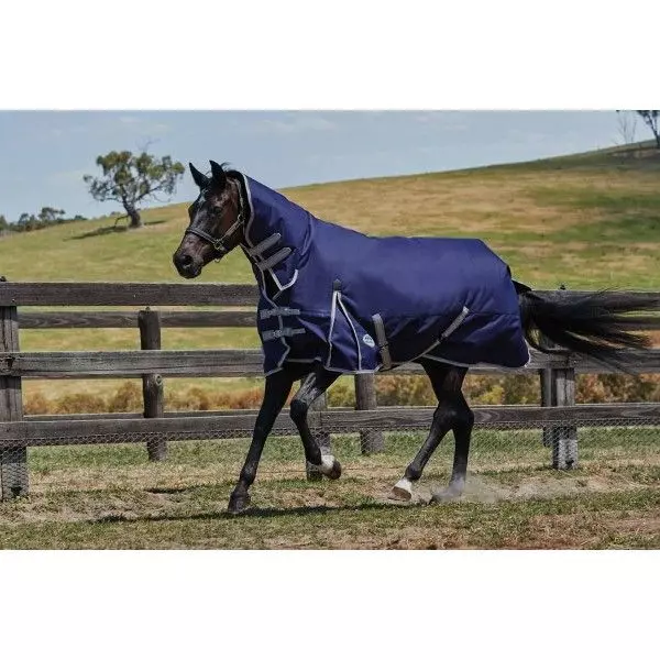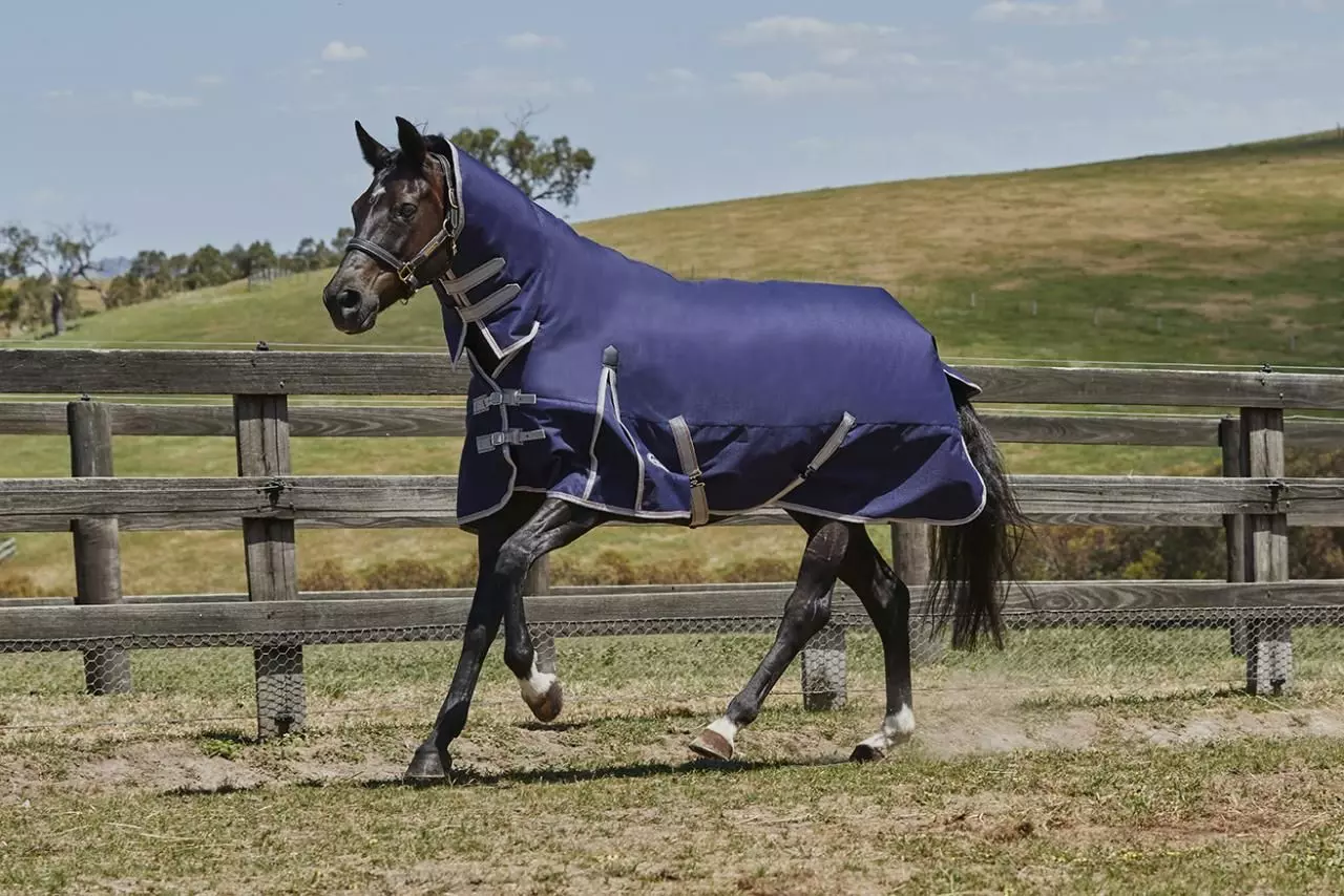 Strong, classic style at a great price. The features a strong and durable 1200 denier ripstop outer shell with repel shell coating that is both waterproof and breathable with 360g of polyfill. Featuring a smooth and durable 210T polyester lining, traditional side gusset for natural movement, twin adjustable buckle front closure, adjustable & removable leg straps, twin low cross surcingles and standard tail flap. Hydrostatic pressure tested to 2000mm plus. Moisture vapour tested to 3000g/m2 plus. 3 year warranty on hardware, waterproofness and breathability on turnouts.